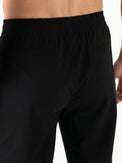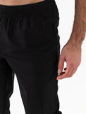 Men's multi-sport pants. These comfortable pants are made of soft, stretchy material. The waistband is elastic and has a drawstring.