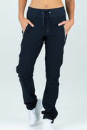 Comfortable women's training pants made of woven stretch fabric. The pockets have zippers. Great for fitness training, but also for casual wear. The Paris Long is 6cm longer than our regular Paris pants, especially for women who prefer extra length. There are zippers at the ankles.