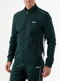 Sporty men's training jacket made of soft woven stretch fabric. This stylish jacket features a high stand-up collar and a zipper that closes all the way to the top. A contrasting stripe runs along the shoulders and side seams, and the Sjeng Sports logo is featured on the chest.