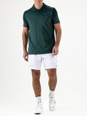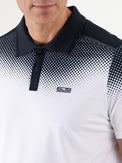 Summery men's polo shirt with a gradient print on the top and sleeves. This polo shirt is made of soft single jersey in a combination of white and dark blue or solid retro green. A great shirt for the tennis court or just for casual wear.