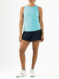 This women's singlet in trendy Aruba blue or retro green is made of a combination of ribbed and smooth fabric. The inset panels along the sides give the singlet a beautiful, feminine silhouette. An ideal shirt for a summer day.