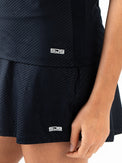 Single jersey singlet in black or white with a diagonal stripe print. This airy women's singlet has a beautiful V-neck for a stylish look. Ideal for working out, but also great with a casual outfit.