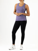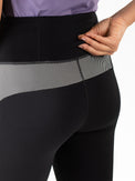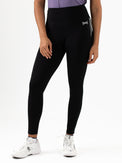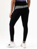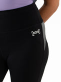 Sporty black leggings that offer complete freedom of movement while exercising. These leggings are made of soft, multi-stretch fabric. At the back, just below the waistband, there's a panel with contrasting stripes, and the Sjeng Sports High Performance logo is printed on the waistband.